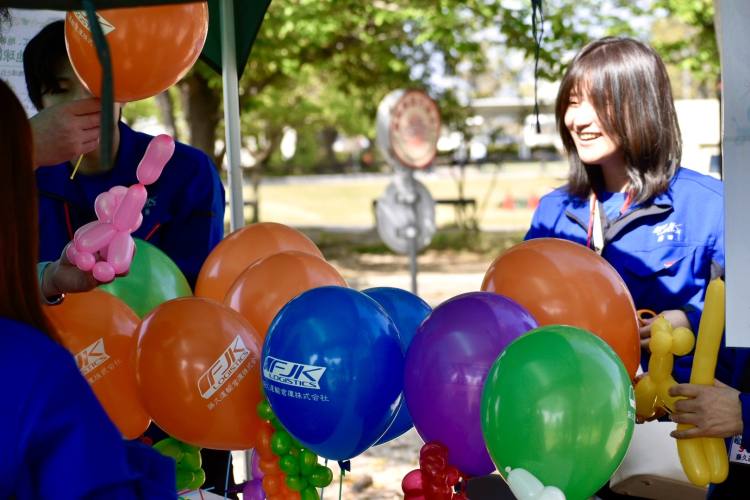 当日はバルーンアートの配布、愛知県の間伐材でできたうちわを使用した参加無料ワークショップ「お絵描きうちわ」を行いました。